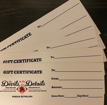 The Devils in the Details is a complete mobile automobile detailing business serving the greater Burlington Vermont area. Our team provides top-notch interior and exterior automotive details offering a number of expert services to get your car or truck looking like new again at the convenience of your home or office!